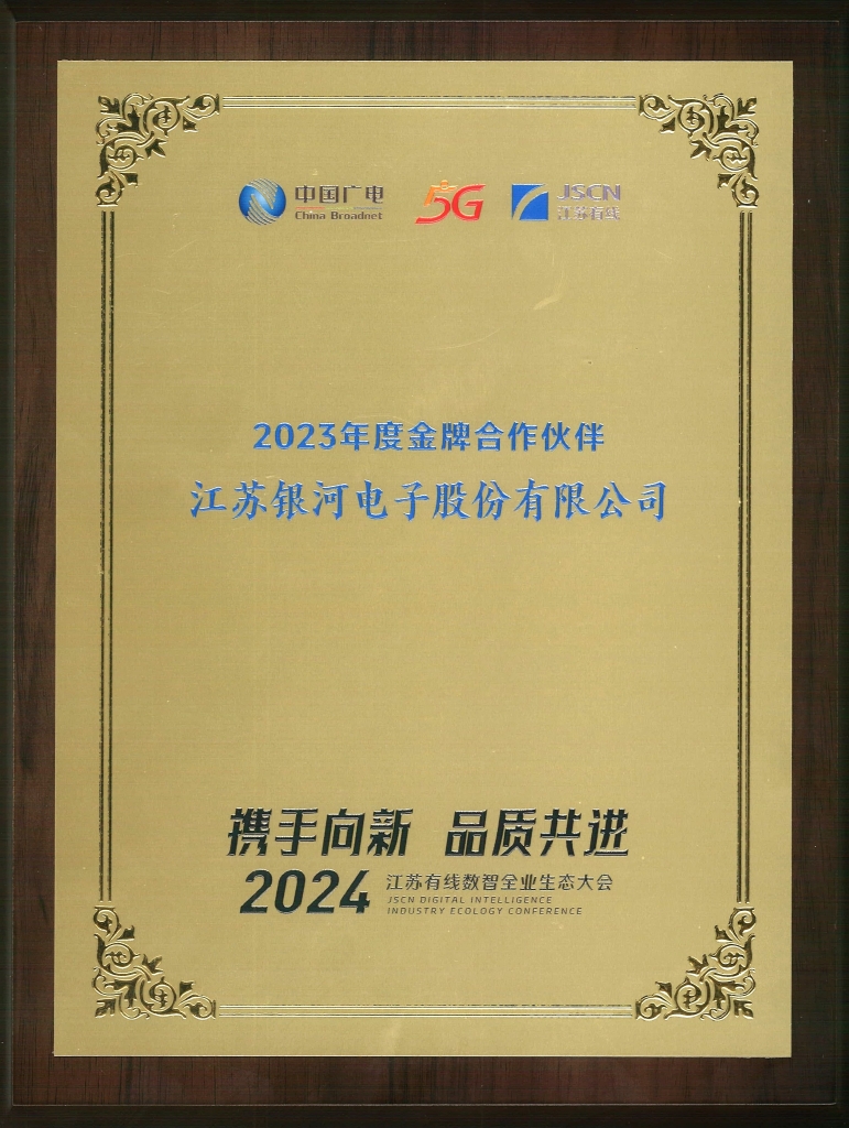 8月21日下午,以“攜手向‘新’ 品‘質(zhì)’共進(jìn)”為主題的2024江蘇有線數(shù)智全業(yè)生態(tài)大會(huì)在寧舉辦,銀河電子作為我國(guó)數(shù)字電視智能終端設(shè)備專業(yè)提供商受邀參會(huì)。大會(huì)期間舉行了“2023年度金牌合作伙伴”頒獎(jiǎng)儀式,銀河電子憑借優(yōu)質(zhì)的服務(wù)、可靠的品質(zhì)、及時(shí)的交付能力,被授予2023年度江蘇有線金牌合作伙伴。